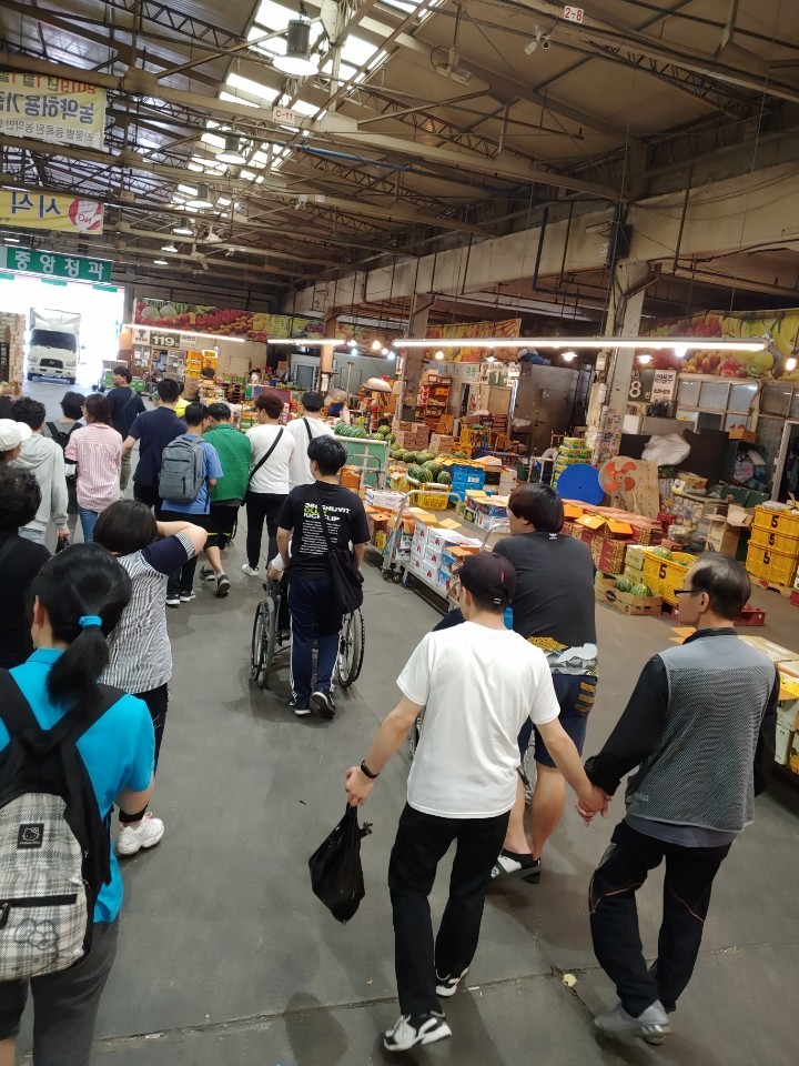 농수산물시장 탐방, 근린공원 산책, 휠체어 밀어주기, 지하철 승,하차시 이동 보조, 식사 도우미 등의 활동을 통해 장애우들은 장기간 실내 생활에서 오는 신체적, 정신적 피로감을 해소하는 계기가 되었다.