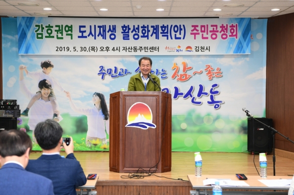 | 김천시(시장 김충섭)는 5월 30일 자산동주민센터에서 ‘감호권역 도시재생 활성화계획(안)’수립을 위한 공청회를 개최했다.