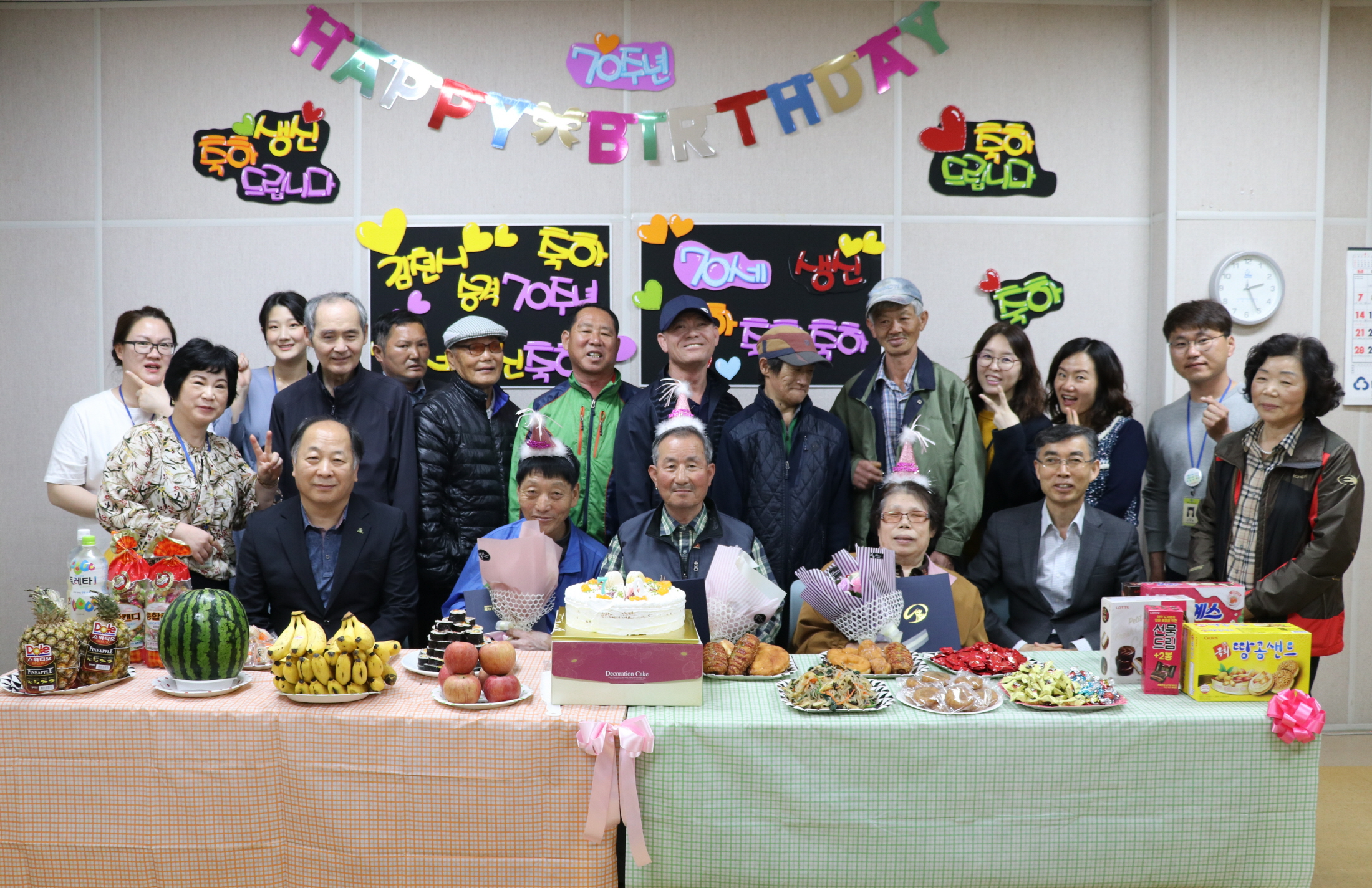 | 이번 생신상차림은 김천이 시로 승격되는 해에 태어나신 분들의 의미를 더하기 위해 김천시 승격 70주년 기념영상을 상영하고 복지관 직원들의 축하영상 메시지와 함께 기념품도 전달했다.