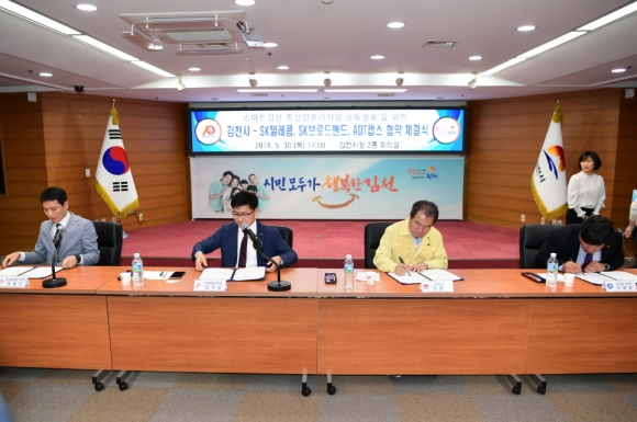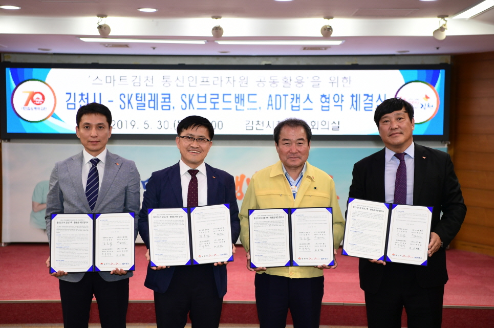김천시, SK텔레콤, SK브로드밴드, ADT캡스와 함께 통신인프라자원 공동활용 위한 협약서 체결