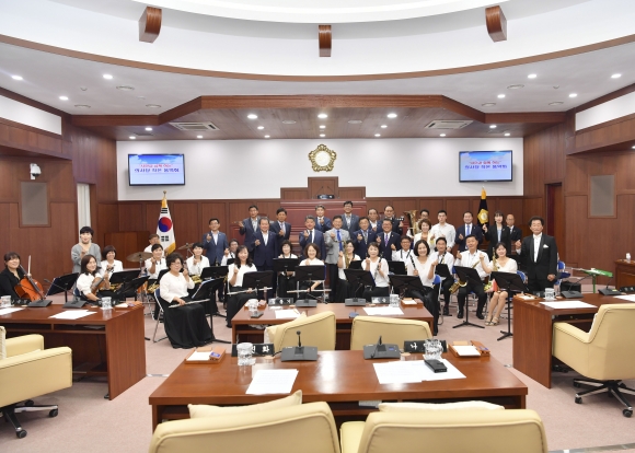 한편, 이날 김천시의회에서는 개회식에 앞서 문화공연 시리즈 제3탄 시민과 함께하는 의사당 작은 음악회를 열었다. 김천 팝스 오케스트라(지휘자 이부화) 단원 15명을 초청하여 약 30분 동안 폭염의 더위를 식혀주는 아름답고 시원한 선율의 연주로 분위기를 사로 잡으며 큰 눈길을 끌고 모두를 감동으로 매료시켰다. 홍영아 단원이 아코디언 독주로 <아모르파티>를 연주하면서 시작된 음악회는 삼지연관현악단 <찔레꽃>, <가곡행진곡>, <보리밭&남촌> 순으로 진행되었고, 앵콜송으로 <김천시민의 노래>를 참석자 모두가 함께 박수를 치면서 분위기는 절정에 이르렀다. 이번 의사당 작은 음악회는 의회가 엄숙한 분위기에서 벗어나 친근함의 이미지 심어주기 일환으로 지난해 제1회 정례회부터 실시되고 있다.