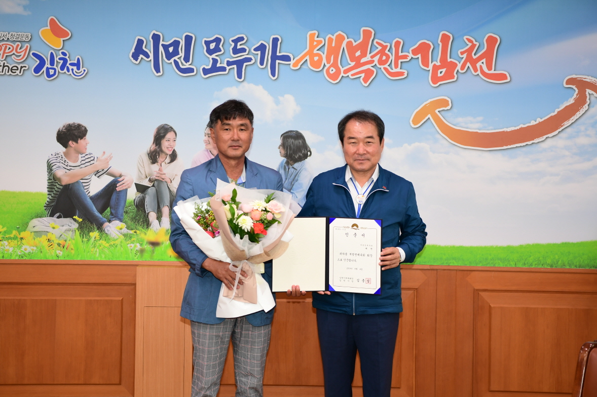 김충섭 김천시장, 개령면체육회장에 인준서 수여