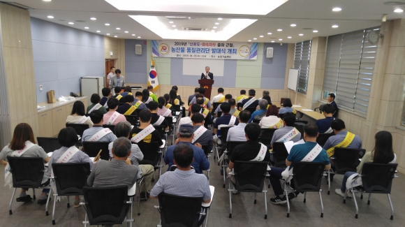 | 김천시(시장 김충섭)는 지난 6월 5일 농업기술센터 소회의실에서 행정, 생산자 단체, 유관기관 등 50명이 참석한 가운데 신포도·미숙자두 조기출하 근절을 위한 『김천포도·자두 품질관리단 발대식』을 개최했다.