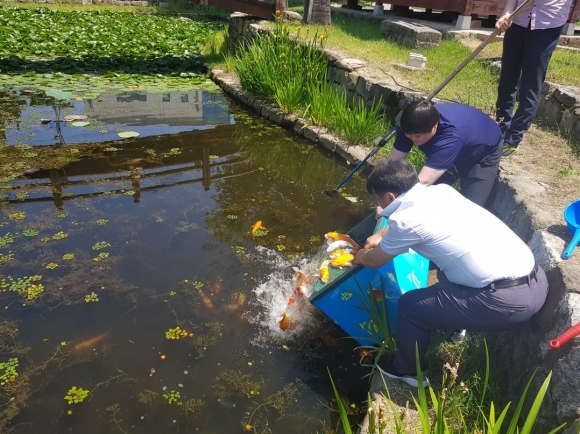 작은 분수 설치, 비단잉어 방류로 자연친화적인 휴식공간 제공