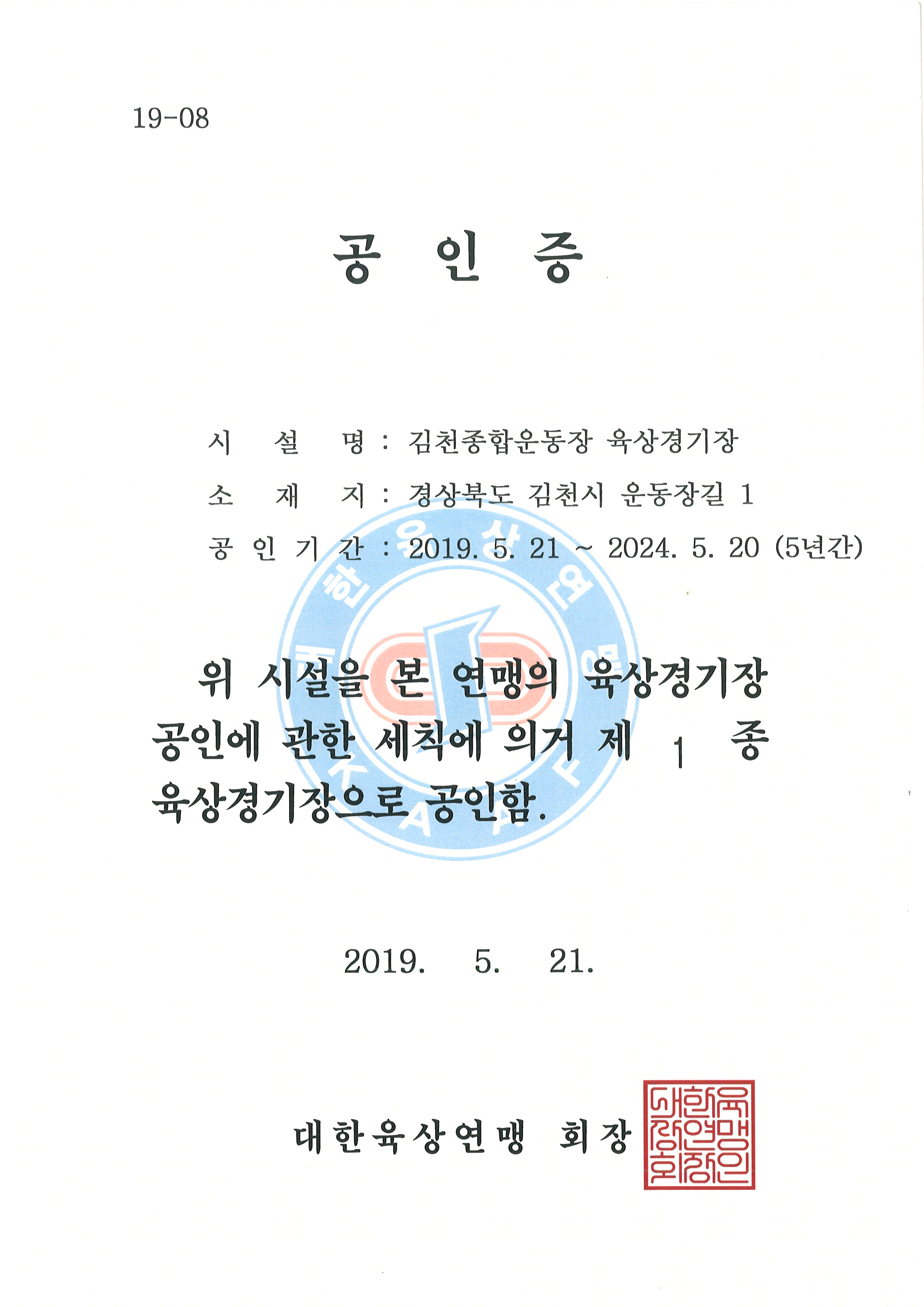 대한육상연맹으로부터 공인 제1종 육상경기장 재취득