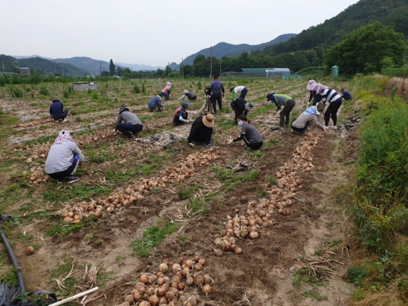 아포읍, 환경위생과 합심하여 양파농가 일손돕기