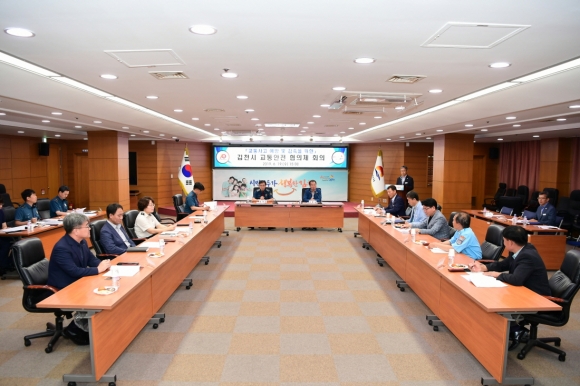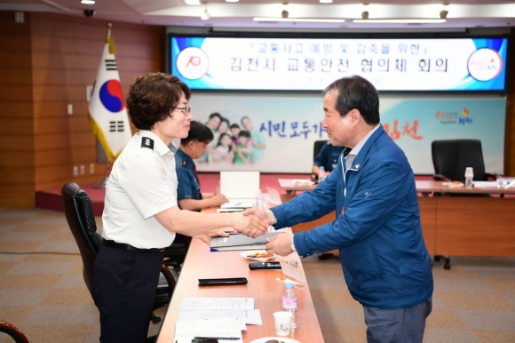 | 김천시(시장 김충섭)는 19일(수) 오후 3시에 김천시청 회의실에서 교통사고 예방 및 감축을 위한 교통안전협의체 회의를 개최하였다.