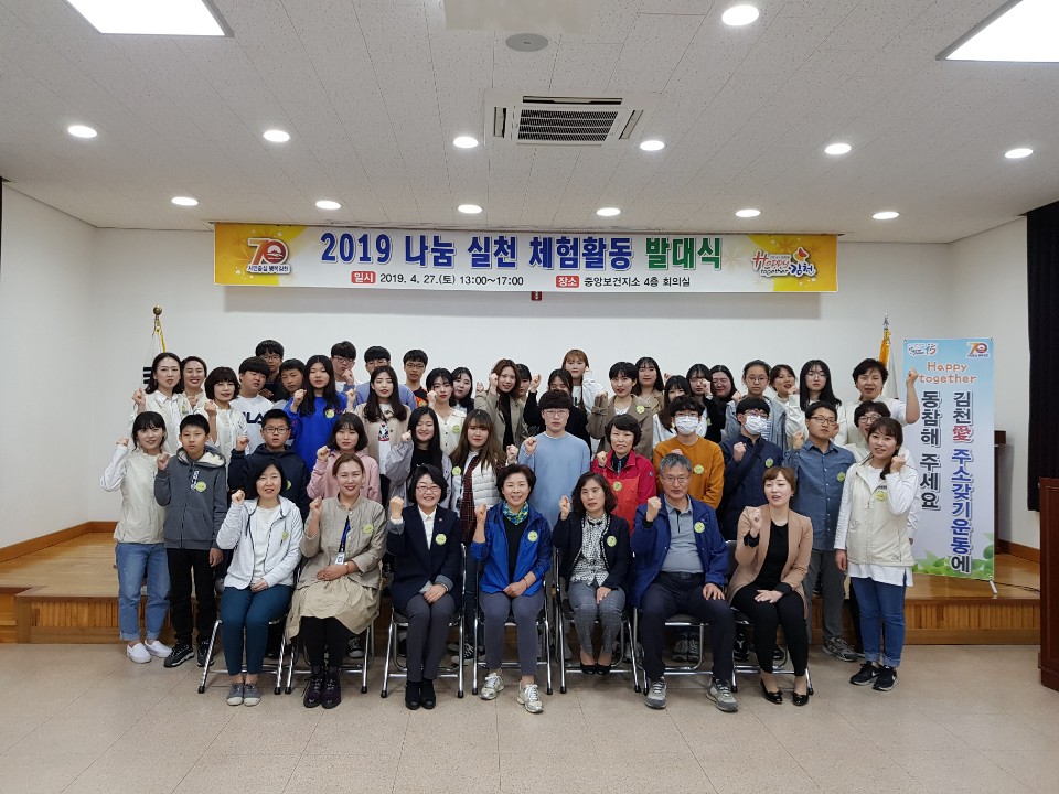 | 김천시(시장 김충섭)에서는 보건소 방문건강관리사업과 연계한 “2019 나눔 실천 체험활동”을 관내 중·고·대학생과 방문사업팀으로 구성된 나눔 봉사자 50여명이 열정적으로 참여한 가운데 지난 4월 27일 발대식을 시작으로 2개월 동안의 봉사활동을 모두 마무리하였다.