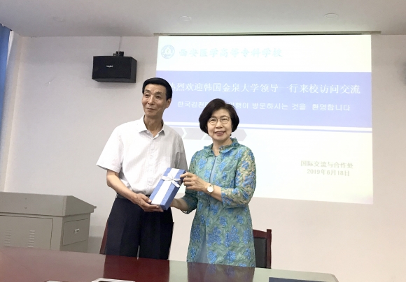 | 지난 6월 21일에 김천대학교 윤옥현 총장을 비롯한 이은숙 김천대 국제교류처장 방문단은 중국 섬서에너지직업기술대학(陕西能源职业技术学院)을 방문하였다.