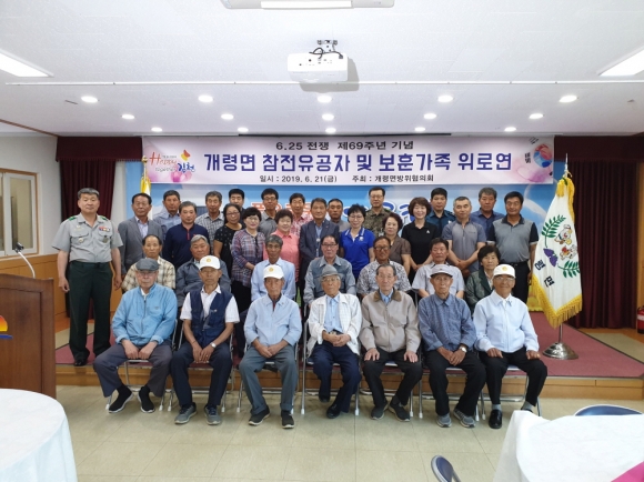 | 지난 6월 21일 김천시 개령면방위협의회(회장 김영환)는 6.25전쟁 69주년을 맞이하여 국가를 위해 헌신한 참전유공자의 호국정신을 기리고, 그간의 공적에 대한 감사의 뜻을 전하기 위하여 Happy together 참전유공자 위로연을 열었다.
