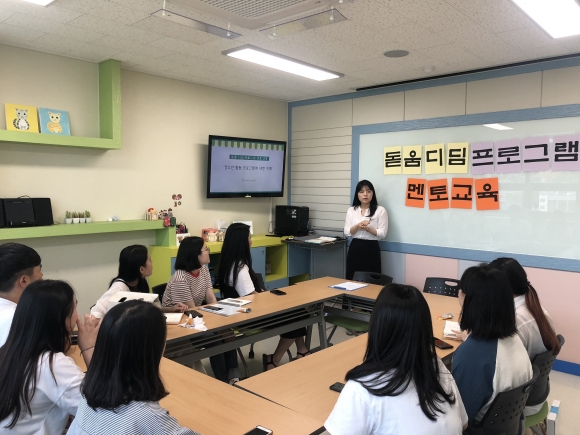교육 시간에는 청소년의 발달 단계에 따른 이해를 돕고 실제로 Wee센터에서 실시하고 있는 프로그램과 디딤이(멘티)와 함께 활동 할 수 있는 프로그램을 소개하여 돋움이(멘토)의 역량을 강화하는 시간을 가졌다. |