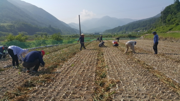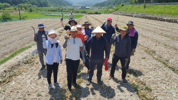 | 김천시 스포츠산업과(과장 도춘회) 직원들은 21일(금) 무더운 날씨에도 불구하고 일손 부족으로 어려움을 겪고 있는 증산면 금곡리 양파 농가를 찾아 양파 수확에 구슬땀을 흘렸다.