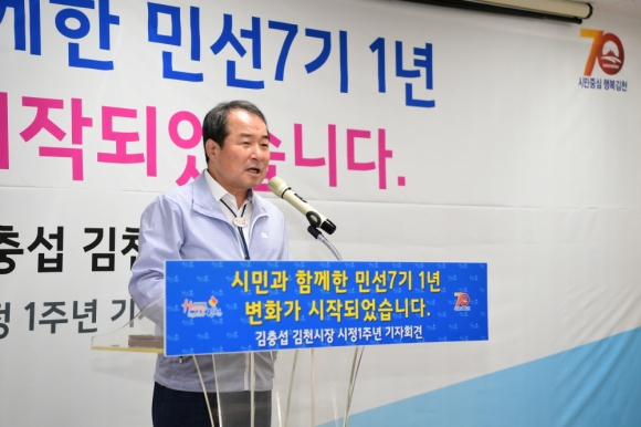 김 시장은 26일 오전 11시 김천시 농소면 이화만리(벽봉로 1651)에서 열린 민선7기 시정1년 기자회견에서 “지난 1년은 새롭게 변화하는 김천시정의 기틀을 마련하고 오직 시민과의 약속을 실천하기 위해 노력한 시간이었다”며 이같이 밝혔다.