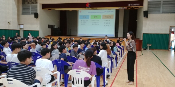 이번 교육 프로그램의 첫 단추는 율곡초등학교 6학년, 서부초등학교 4~6학년 학생들 200여명으로, 해피투게더운동 전문강사가 직접 학교를 방문해 미래사회에 필요한 친절, 질서, 청결, 바른인성 함양 등 핵심덕목에 대한 강의를 했다.
