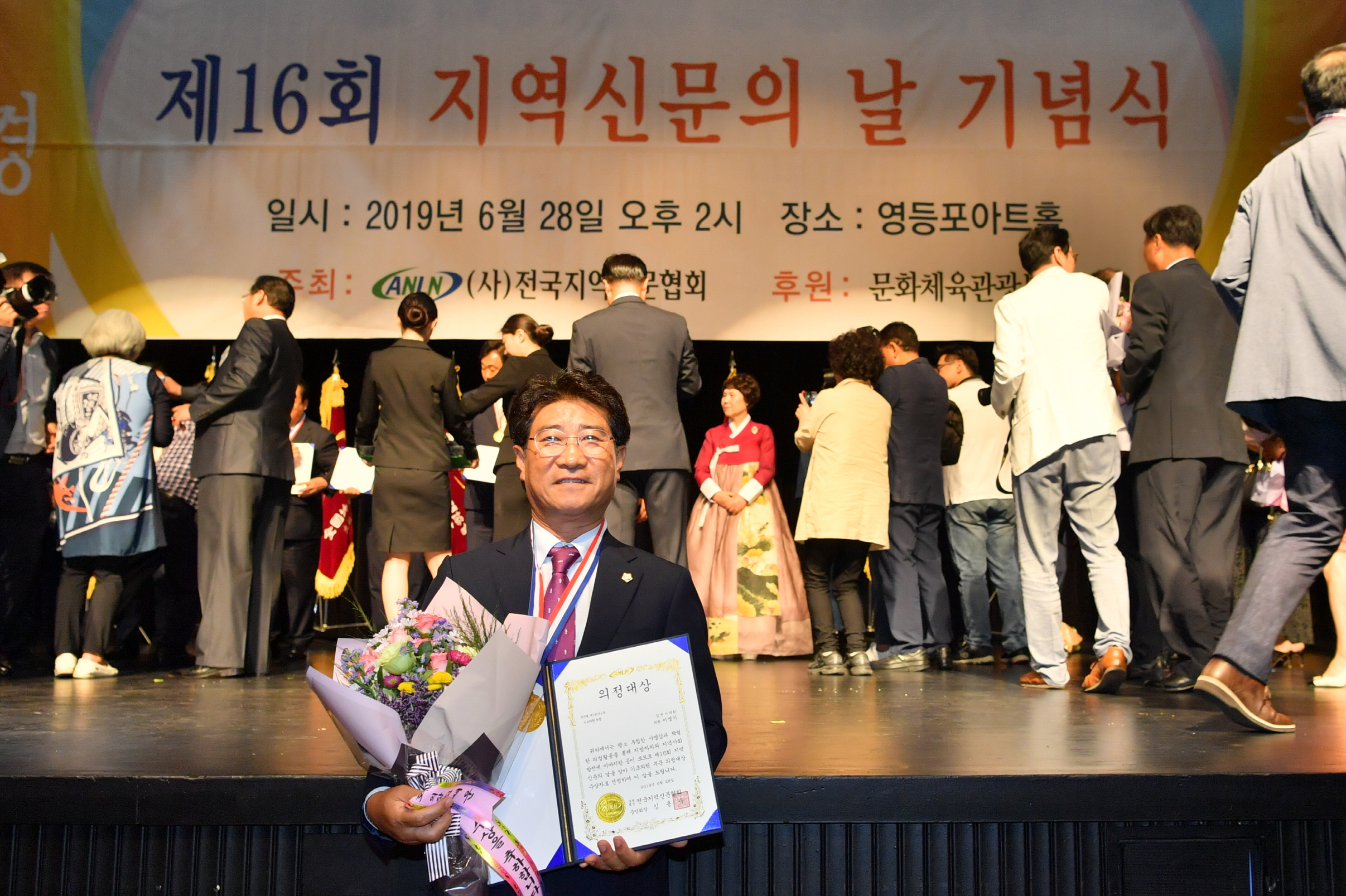 | 김천시의회 이명기 의원이 6월 28일 오후 2시 (사)전국지역신문협회 주관으로 영등포 아트홀에서 개최된 제16회 제역신문의 날 기념식에서 기초의원 부문 의정 대상을 수상하였다.