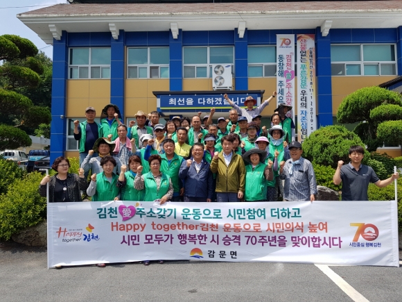 현장을 찾은 김윤수 감문면장과 김세운 시의회 의장은 “농번기에도 불구하고 Happy together김천 청결운동과 함께 깨끗한 감문면 만들기에 열정적으로 힘을 보태주신 새마을 회원분들에게 진심으로 감사드리며, 우리 새마을지도자협의회가 평소 덕을 많이 쌓아서 오늘 시원한 날씨 속에서 아무런 사고없이 작업을 잘 마무리할 수 있었다”며 고마움을 전했다.