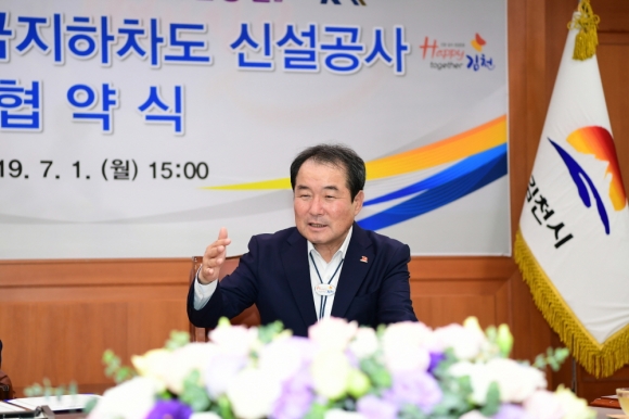 이에 이종윤 충청본부장은, “오늘 김충섭 시장님의 민선7기 취임1주년을 진심으로 축하드리며, 이런 뜻깊은 날 김천시와 충청본부가 황금동지하차도 신설공사 협약을 체결하게 되어 더 할 나위 없이 기쁘게 생각하며, 지하차도 신설공사가 최대한 빨리 진행될 수 있도록 최선을 다할 것을 약속드린다” 라고 화답하였다.