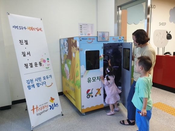 | 김천시에서는 민선7기 1주년을 맞이하여 면역기능이 약한 영유아를 위하여 유모차 소독기를 김천시 육아종합지원센터에 설치하였다. 유모차 소독기는 유모차 뿐만 아니라 카시트, 대형장난감 등 가정에서 부피가 큰 유아용품을 간편하게 소독할 수 있는 기기이다. 이번에 설치한 '유모차 소독기'는 빛을 이용한 살균 소독기능을 갖추고 있고, 안전장치가 설치되어 있어 소독 중 문이 열리면 자동으로 소독기가 정지되는 기능이 있어 안심하게 사용할 수 있다.특히 자외선소독, 적외선소독, 분무소독 등 3단계 소독과정을 통해 각종 세균, 바이러스, 곰팡이를 99.9%까지 박멸할 수 있고, 아토피, 비염, 천식 등 알레르기를 유발하는 집 먼지 진드기도 제거하는 탁월한 기능을 갖고 있다. 이와 함께 외부창과 LCD모니터를 통해 소독과정을 본인이 직접 확인할 수 있다.