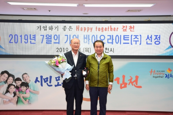 김충섭 김천시장은 " 김천의 밝은 미래를 믿고 본사를 우리시로 이전하고 많은 일자리를 창출하여 지역 경제 활성화에 기여하여 온 점을 높이 평가하고, 시에서도 스마트공장 구축지원사업, 해외수출기업 지원사업, 기술성장 디딤돌사업 등 기업 니즈를 파악한 혁신적 시책들을 지속적으로 개발하여 지역 기업이 김천경제를 확실히 떠받쳐 나갈수 있도록 아낌없이 지원하겠다고“ 말했다.