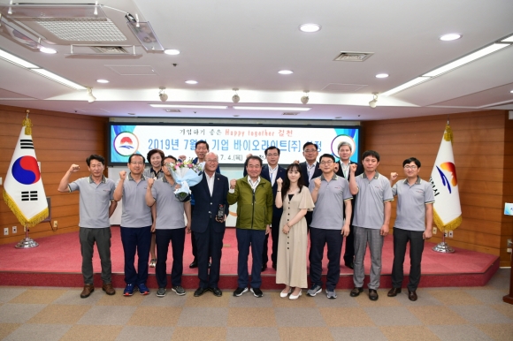 | 7월 이달의 기업으로 선정된 바이오라이트 주식회사는 기본에 충실하여 세계최고의 할로겐 전구 생산기업이 되자는 정신으로 1999년 창립하여 수많은 연구개발로 기술혁신을 이룩하여, 자동차용 할로겐 전구를 국내는 물론 독일, 일본, 중국, 인도, 동남아시아 등 전세계 30여개국에 수출을 하고 있는 기업으로 7월 4일 이성숙 바이오라이트(주) 대표 및 임직원 등 40여명이 참석한 가운데 선정패 수여식 및 회사기 게양식을 개최하였다.