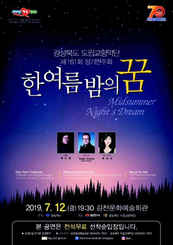 한재성 경북도 문화예술과장은 “무더운 여름밤, 더위로 지친 도민의 마음을 달래줄 밝고 경쾌한 춤곡 위주로 이번 정기연주회 프로그램을 구성했다”면서 “앞으로도 도민들이 클래식 음악과 친숙해질 수 있도록 찾아가는 연주회와기획공연 등을 더욱 확대해 나가겠다”고 밝혔다.