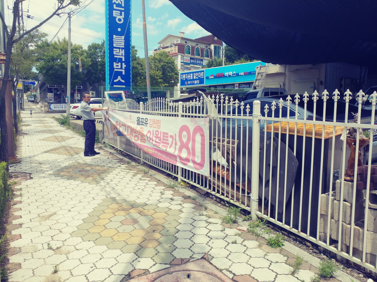 이를 위하여 관내 게첩 되는 모든 현수막 중, 특히 교차로, 가로수, 전봇대 등에 설치된 불법 홍보 현수막을 집중 정비, 단속을 시행하였으며, 전자제품, 자동차 판매 홍보 등 불법현수막에 대해서는 과태료 부과의 행정조치도 시행하였다.