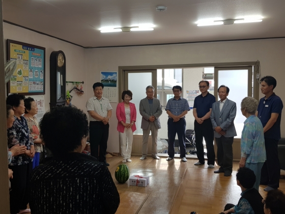 이 날 행사는 연일 계속되는 폭염에 지치기 쉬운 지역 어르신들이 건강하게 여름을 보낼 수 있도록 김희덕 자산동장, 전계숙 산업건설위원장, 김병철 시의원을 비롯한 자치위원들이 직접 각 경로당을 방문해 수박과 떡을 전달하고 어르신들의 건강과 안녕을 기원하고 애로사항을 청취하는 등 소통‧공감‧동행의 훈훈한 나눔봉사활동으로 전개되었다.