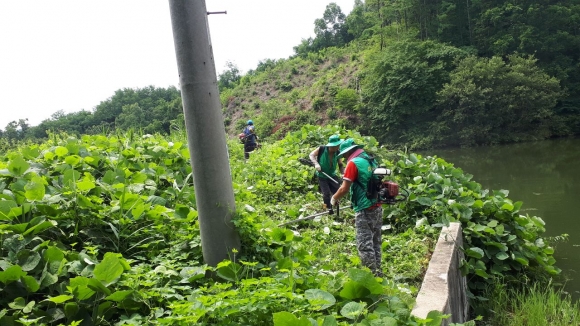 관내 저수지 15개소 제당 잡초 및 지장목 제거작업 실시