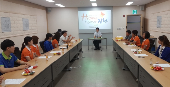 | 김천시(시장 김충섭) 혁신도시에 위치하고 있는 김천녹색미래과학관에서 는 7월 17일 과학관 직원과 시설위탁운영업체 ㈜고암 직원이 함께 머리를 맞대고 전국에서 가장 친절한 과학관을 만들기 위한‘해피투게더 간담회’를 개최했다.