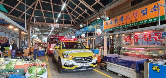 김천소방서, 「소방차 길 터주기」훈련 실시