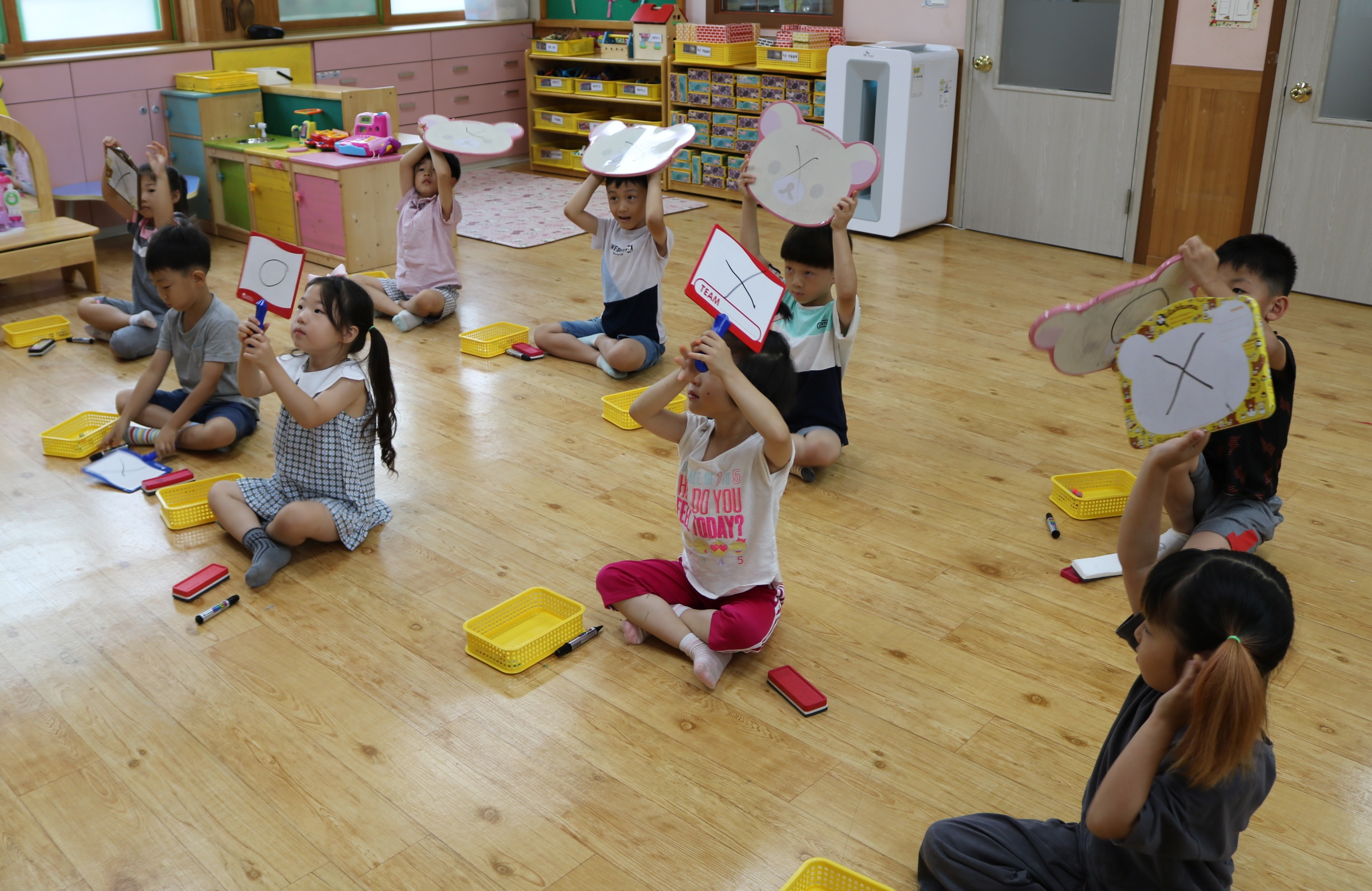 안전퀴즈놀이는 유아들이 쉽게 이해하고 재미있게 안전지식을 습득할 수 있도록 문제를 구성하고 모두가 끝까지 풀어서 개인별 점수를 적립하는 놀이 방식으로 진행하여 유아들의 흥미를 높였다. 유아들은 여느 때 보다 더 흥미 진지한 눈빛으로 한 문제도 놓치지 않으려고 귀 기울이며, 문제를 맞힐 때 마다 “야호!” 환호와 박수로 즐거움을 표현하였다. 유아들은 행사를 마치고 자기가 모은 점수를 보며 뿌듯해 하였다.