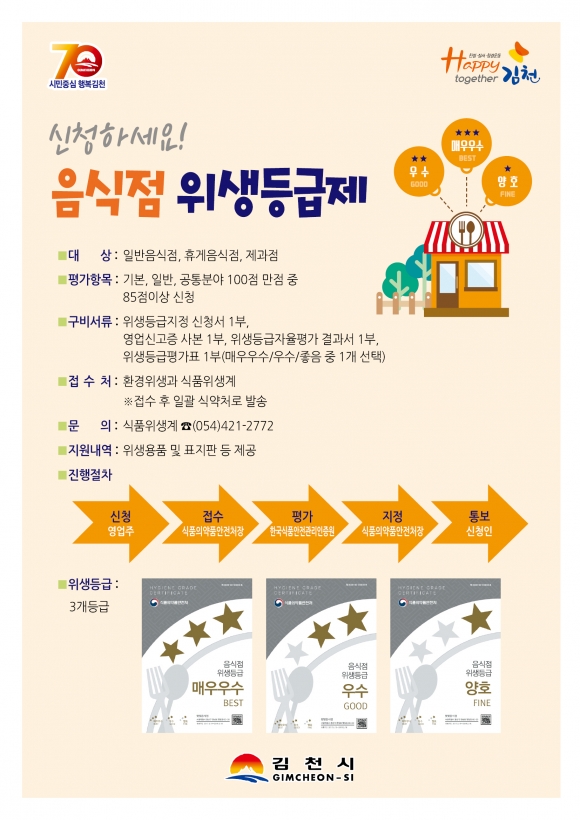 김천시, 음식점 위생등급제 30개소 지정
