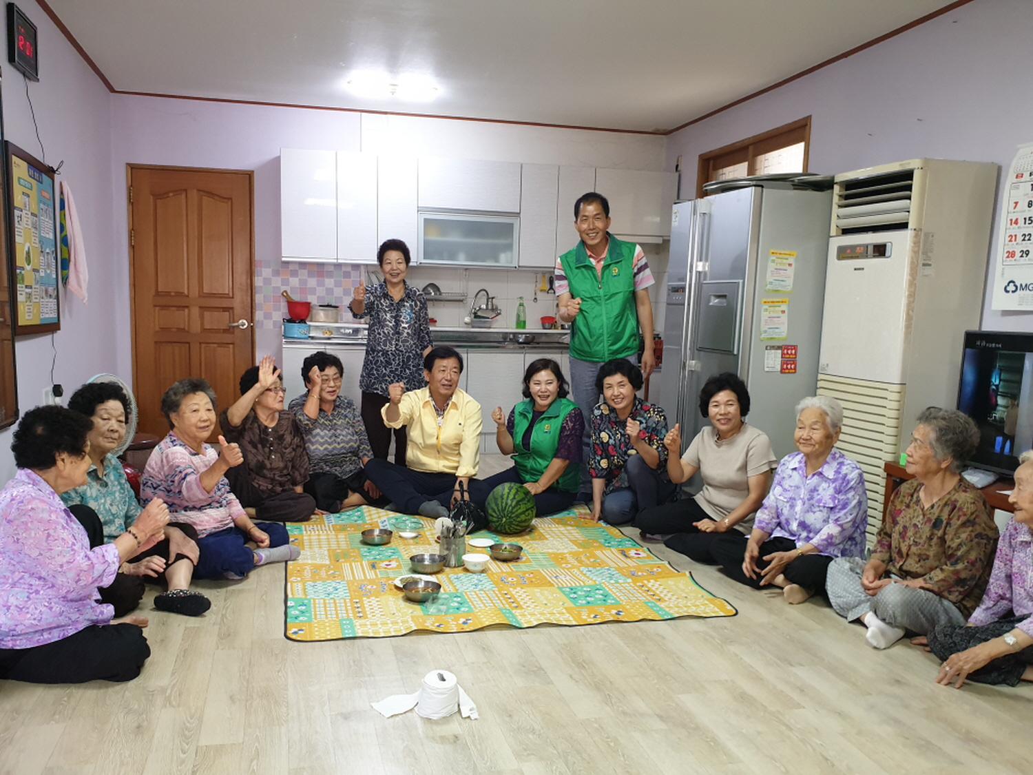 신광식 새마을지도자 회장은 “올해 유난히 습한 날씨 탓에 어르신들이 생활하기 많이 지치고 힘드실 것 같다. 수박과 백숙 재료를 준비했으니 맛있게 드시고 올 여름 건강하게 잘 지내시기 바란다.”라고 전했고,