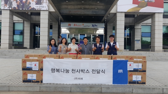 | 지난 7월 24일 ㈜미래는 김천시(시장 김충섭)를 방문하여 더위에 취약한 관내 저소득층에게 전해달라며 선풍기 50대(240만원 상당)를 전달했다.