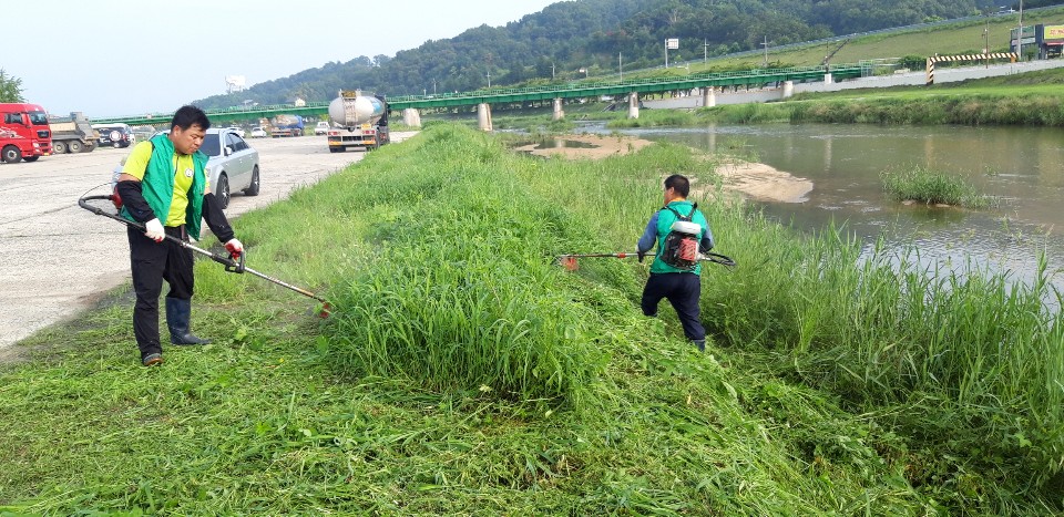 | 김천시 평화남산동 새마을 남․여지도자(협의회장 신광식, 부녀회장 김이경) 회원 30여명은 26~27일 양일간 직지천둔치 주변 풀베기 및 환경정화활동을 실시하였다.