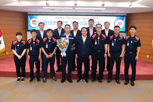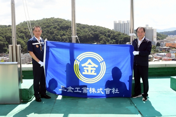 삼금공업(주), 김천시 청사에 회사기 ‘펄럭펄럭’