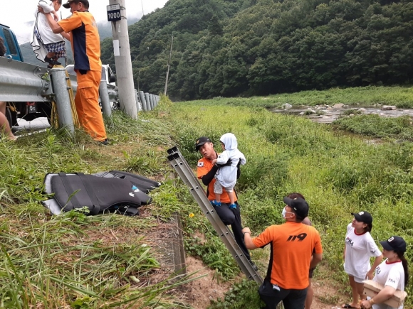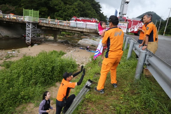 김천소방서, 증산면 물놀이 피서객 32명 구조 - 폭우로 인해 계곡에서 고립된 피서객 안전한 장소로 구조 -