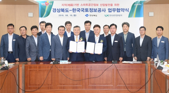 | 경상북도는 19일 도청 회의실에서 이철우 경상북도지사와 최창학 한국국토정보공사 사장이 참석한 가운데 지적(地籍)기반 스마트공간정보 산업발전을 위한 ‘경상북도-한국국토정보공사간 업무협약(MOU)’을 체결했다고 밝혔다.