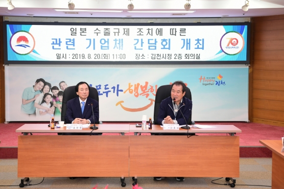 | 김천시(시장 김충섭)는 20일, 시청 2층 회의실에서 일본 수출 규제 조치에 따른 관련 기업체 간담회를 긴급히 개최했다.