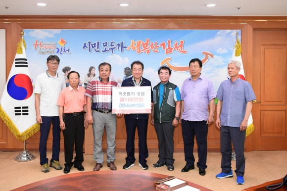 | 김천시GAP연합회(회장 안종복)는 20일 관내 어려운 이웃에게 전달해달라며 이웃돕기 성금 100만원을 김천시에 전달했다.