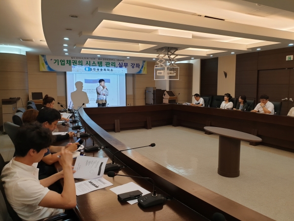 이번 교육은 효율적인 채권관리와 부실채권 예방을 위해 기업채권의 시스템관리 정의 및 목적, 채권회수 기법, 부실채권 예방기법, 기업채권의 시스템관리 적용 등을 주제로 자세한 설명과 함께 관련 법령과 사례를 중심으로 자세히 소개됐으며, 질의·응답을 통해 이해를 도왔다.