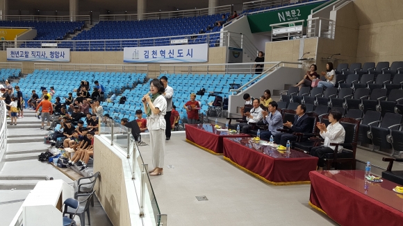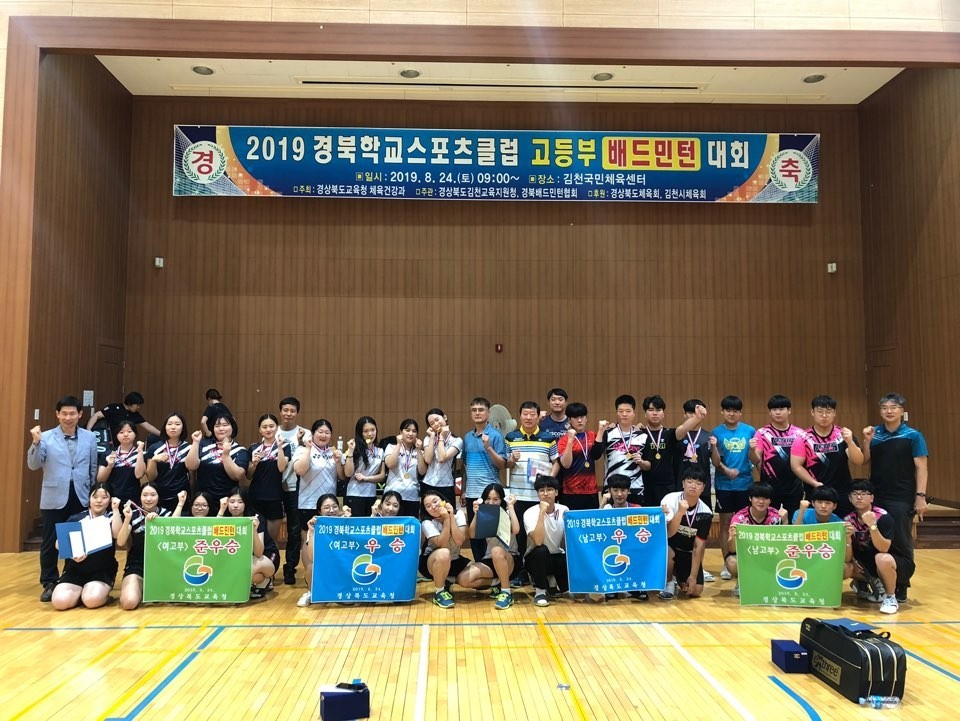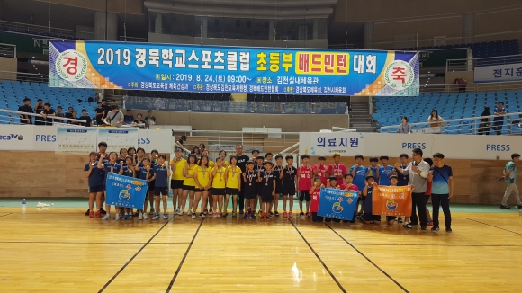 | 김천교육지원청(교육장 마숙자)은 지난 8월 24일 김천스포츠타운 내 김천실내체육관과 김천배드민턴경기장, 김천국민체육센터에서 2019 경북학교스포츠클럽 배드민턴 대회를 개최하였다. 본 대회는 학교체육을 활성화하고, 단체 활동으로 친구간 우정을 도모하여 학교폭력을 예방하며, 기초체력 향상을 도모하는 데 목적이 있다. 이날 대회에는 경북도내 초등학교 29개교 211명, 중학교 26개교 196명, 고등학교 22개교 174명 총 77개교 580명의 학생과 지도교사 77명 등이 참가하여 그동안 갈고 닦은 기량을 겨루었다.