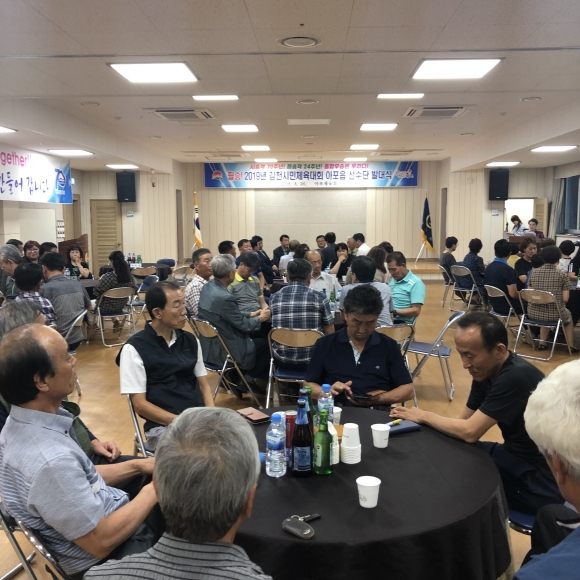 | 아포읍체육회(회장 유청술)는 지난 8월 26일 아포읍종합복지관에서 2019년 김천시민체육대회 우승을 기원하는 발대식을 갖고 본격적인 체전 준비에 돌입 하였다.