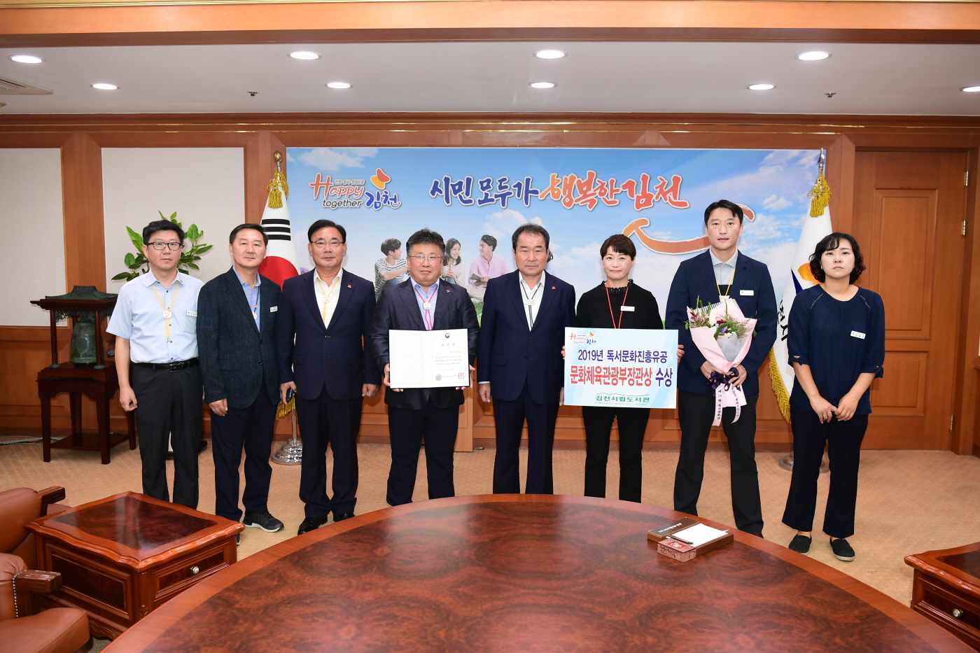 | 김천시립도서관이 지난 8월 30일 충북 청주시 예술의 전당에서 열린 2019년 대한민국 독서대전에서 문화체육관광부장관이 수여하는 독서문화상을 수상하는 영예를 안았다. 이 상은 문화체육관광부가 국민 독서문화진흥과 환경조성에 적극적이고 모범적으로 기여한 개인과 기관․단체에 수여하는 상이다.