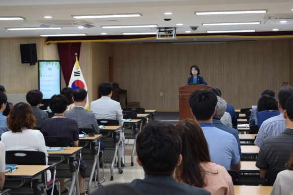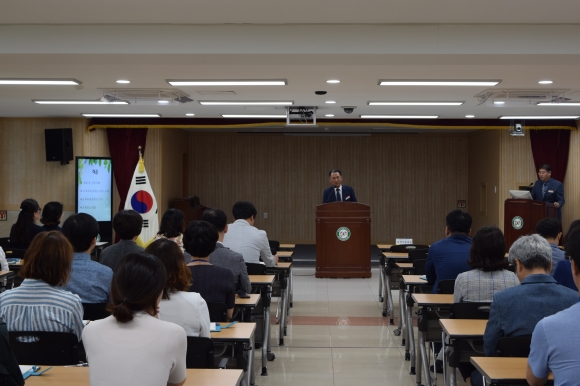 | 경상북도김천교육지원청(교육장 마숙자)은 9월 2일(월) 김천교육지원청 대회의실에서 9월 새달맞이 회의를 개최하였다. 전 직원이 참석한 가운데 9월 1일자로 부임한 박명호 교육지원과장을 소개하는 시간을 가졌다.