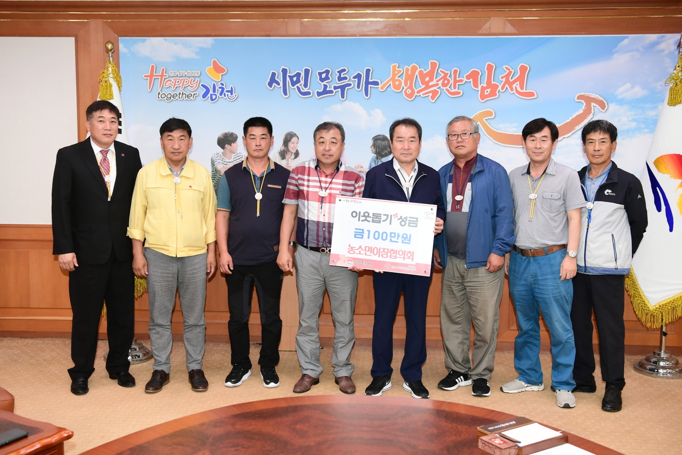 | 김천시 농소면이장협의회(회장 안종복)은 지난 3일 김천시청을 방문하여 소외된 이웃에게 전해달라며 이웃돕기 성금 100만원을 전달했다.