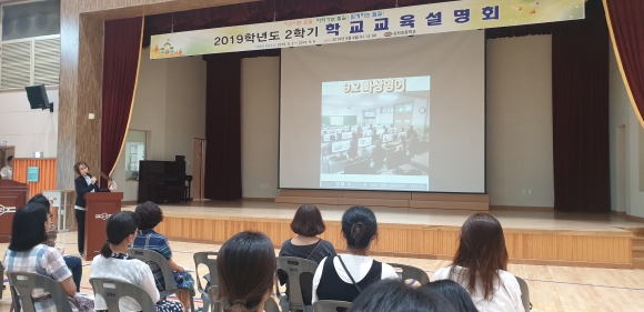 이날 설명회는 학교장의 인사를 시작으로 2019학년도 1학기 주요 교육 실적 및 행사, 2학기 주요 교육활동에 대한 안내를 하였다. 또한 학부모들을 위한 다양한 교육 연수 내용(교원능력개발평가, 기초학력 향상, 생활기록부, 사교육비 경감, 각종 예방교육 - 학교폭력, 아동학대, 가정폭력, 성폭력, 양성평등, 흡연, 자살-생명존중 교육)을 마련하여 진행함으로써 가정과 학교의 연계 하에 효율적이 교육이 이루어질 수 있는 토대를 마련하였다.