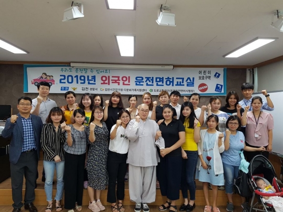 | 김천경찰서(서장 임경우)는 지난 9월 6일 김천시다문화가족지원센터 대강당에서 김천지역 외국인 유학생 및 근로자, 결혼이주여성의 기동성확보 및 취업환경 개선 등 사회적 활동 영역 확대를 위한 『외국인 운전면허교실』을 개강하였다.