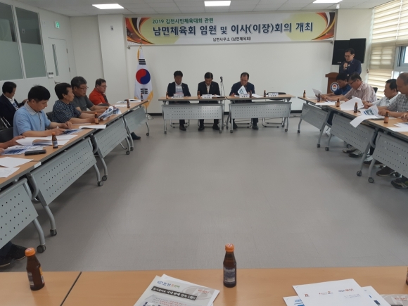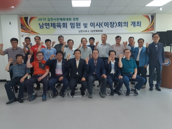 | 김천시 남면체육회 (회장 여홍기)는 지난 6일 남면사무소 2층 디자인실 에서 박규영 남면장, 이성희 김천혁신농협 조합장을 비롯한 체육회 임원 및 당연직 이사인 마을 이장 등 30여명이 참석한 가운데 오는 10월15일 개최 되는 김천시민체육대회 준비와 필승 결의를 다지기 위한 간담회를 가졌다.