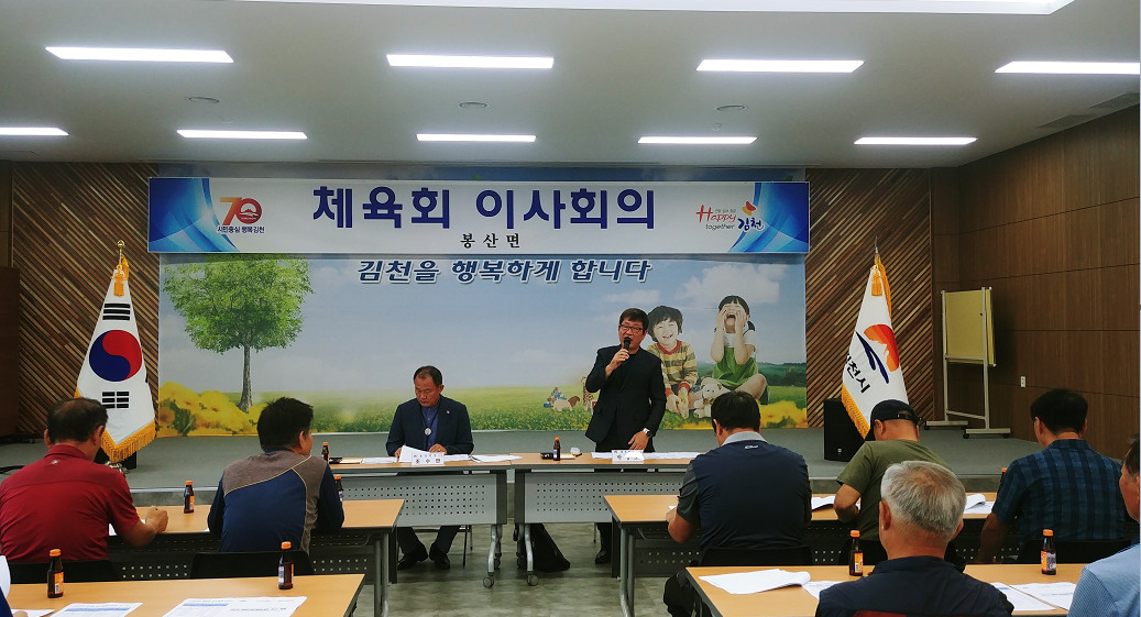 | 김천시 봉산면체육회는 6일 건강증진센터 3층 회의실에서 부회장 및 이사 40여명이 참석한 가운데 봉산면체육회 이사회를 개최하였다.